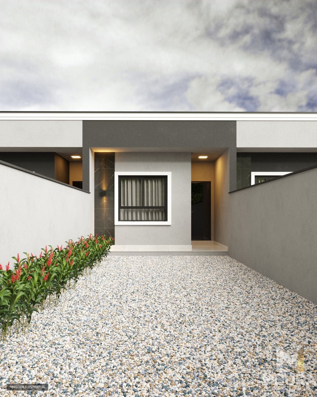 Com espaços bem distribuídos e uma fachada charmosa, esta casa geminada se destaca pela sua arquitetura contemporânea e funcional. Ideal para quem busca um lar aconchegante e com estilo.